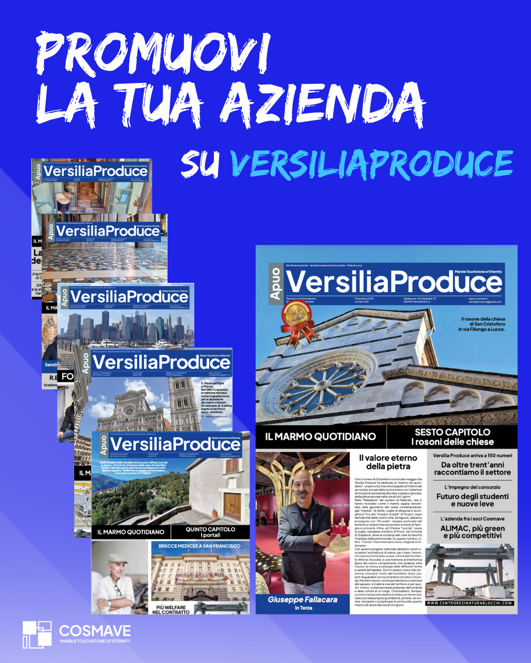 Il periodico bimestrale del Consorzio Cosmave è distribuito nei maggiori comprensori lapidei italiani.Letto da architetti, progettisti, designer e operatori del settore, racconta e promuove la pietra naturale e le sue applicazioni.