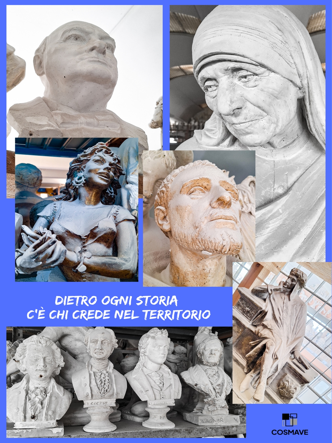 Nella gipsoteca della Quarra Italia di Pietrasanta (laboratorio Franco Cervietti) la storia passa attraverso i bozzetti. Un secolare processo artistico che trasforma la materia grezza in scultura. Modelli in gesso che danno vita a volti e posture che narrano il passato. Le vicende dell’uomo e l’arte si fondono per dare vita ad un unico racconto.